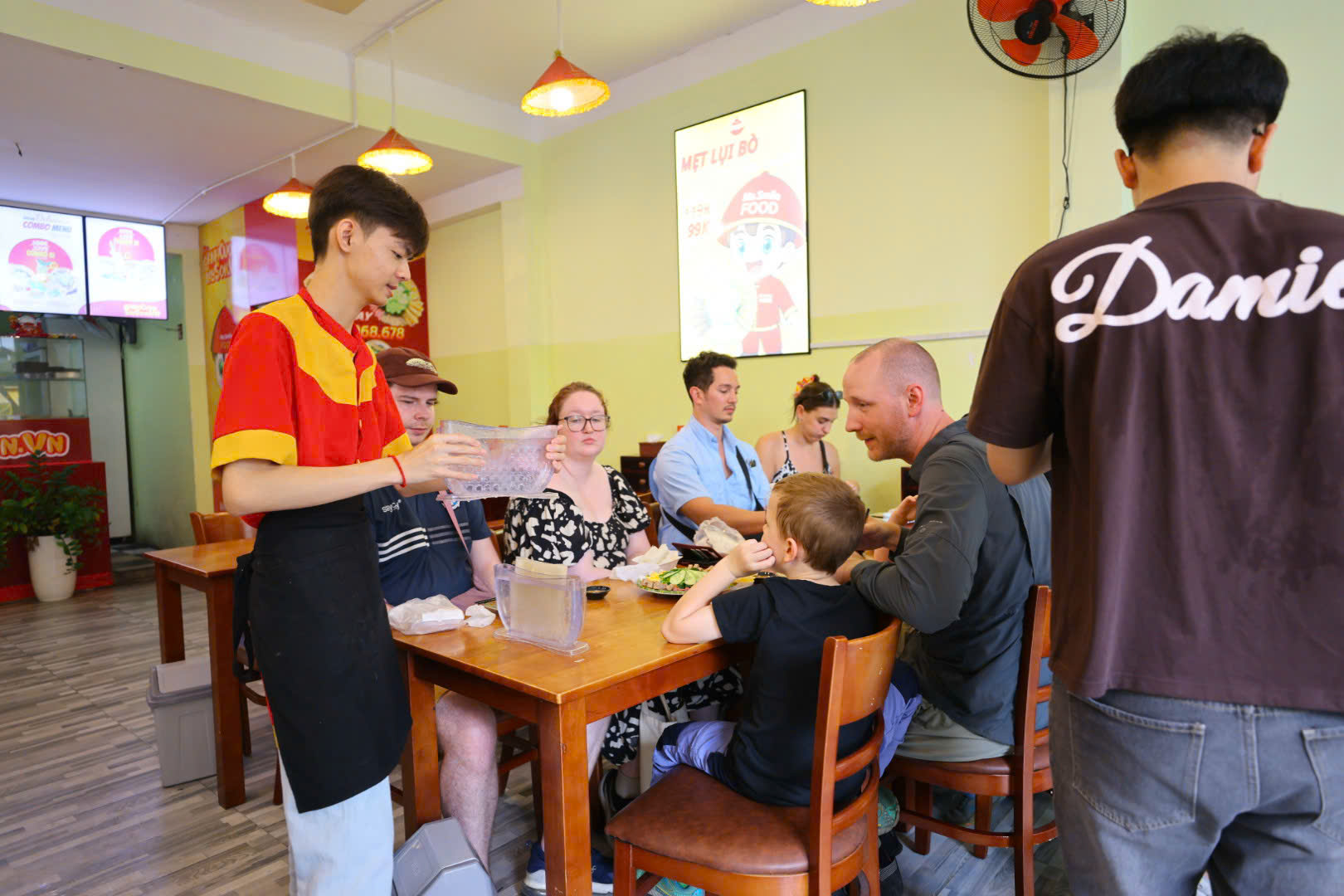 Xong xuôi, các nguyên liệu sẽ được gia giảm, trộn chung với nước, đánh đều tay để chuẩn bị cho việc tráng bánh.